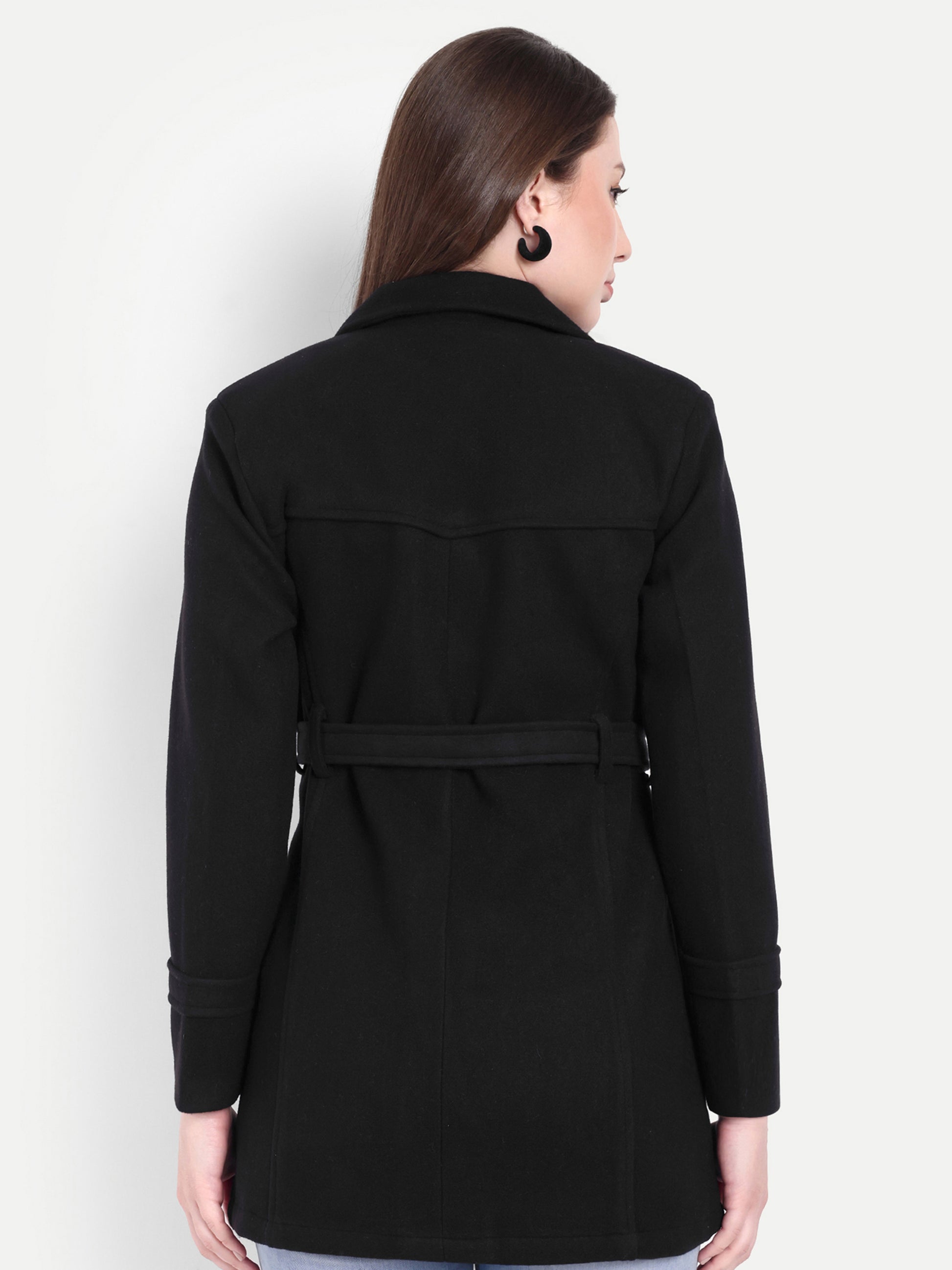 Excent Women’s Woollen Tweed Belted Coat – Classic Long Winter Jacket in Black| Elegant Warm Overcoat for Women