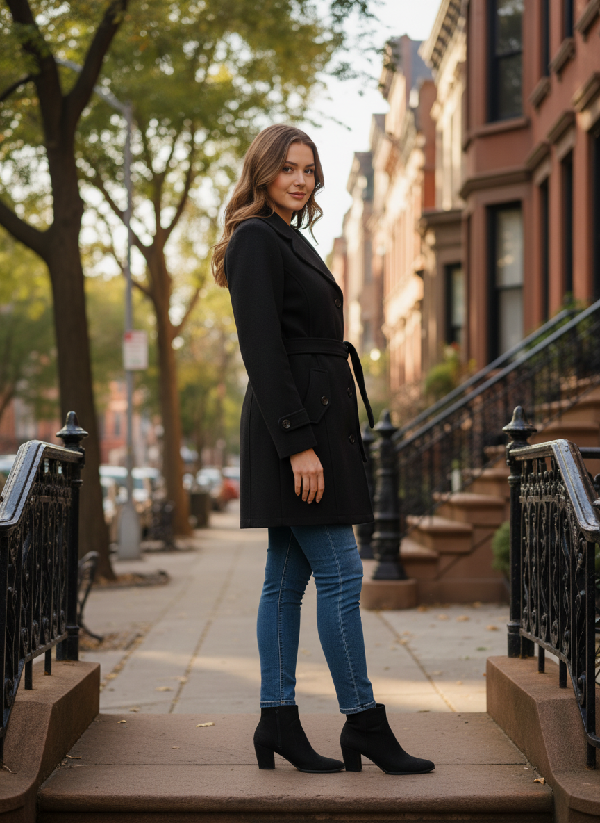 Classic belted silhouette enhances your waistline while keeping you warm.